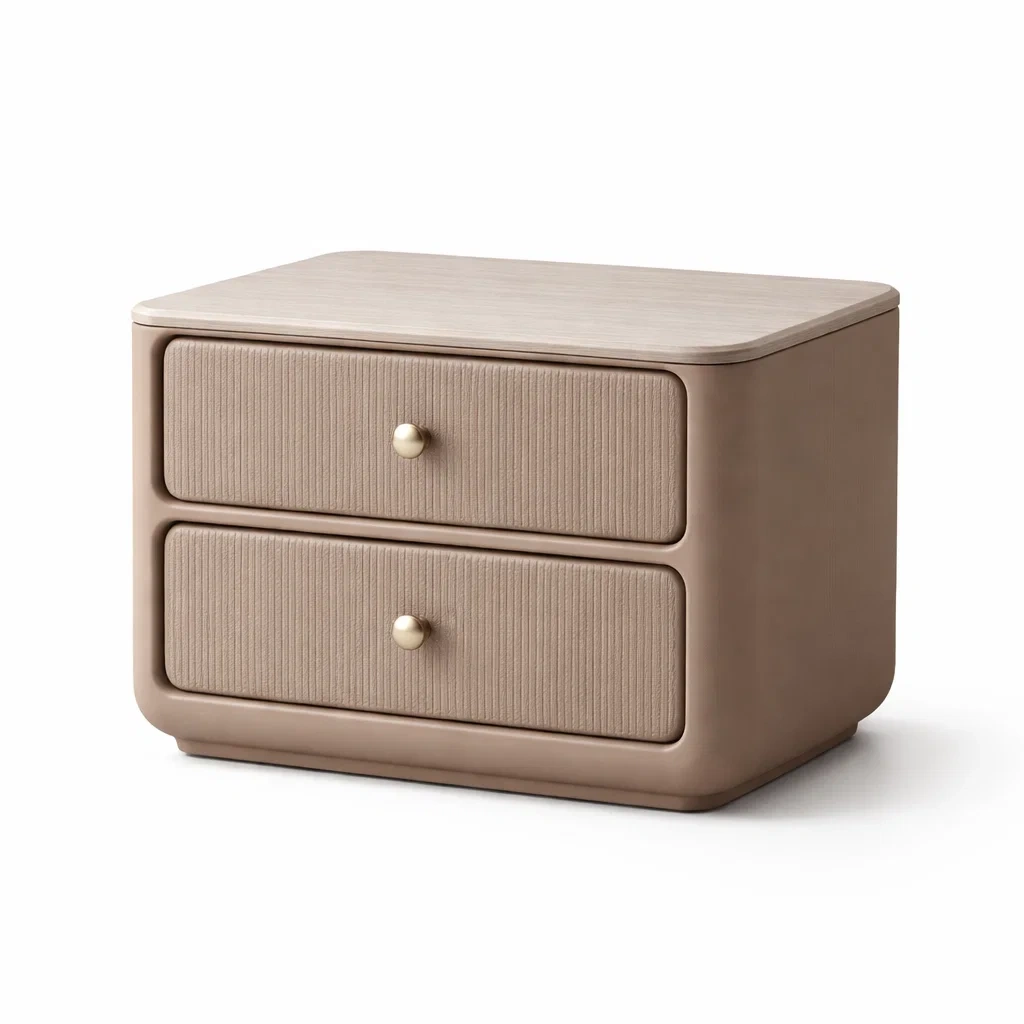 Comodino in mdf e tessuto beige con due cassetti 60x40x45 cm