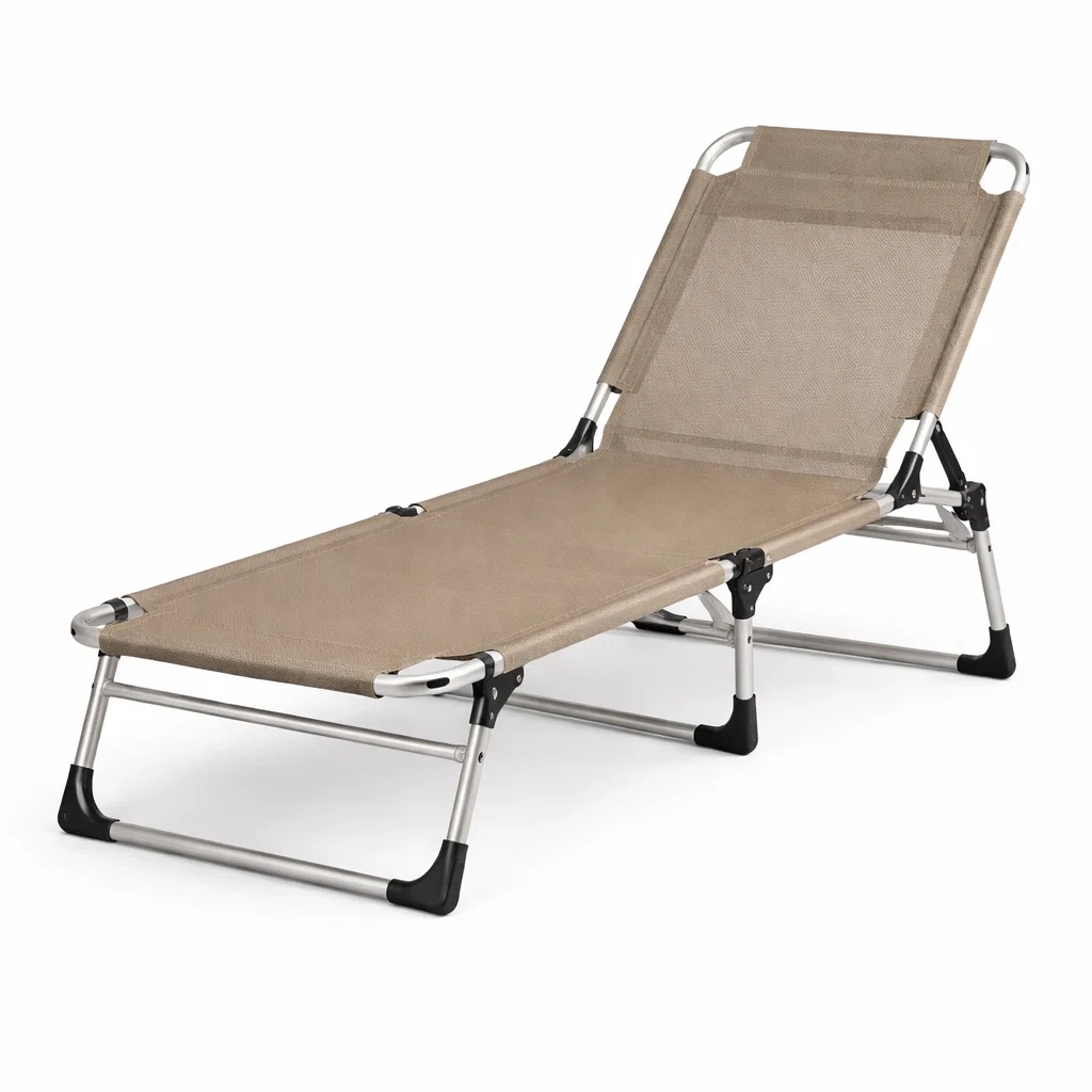 Lettino pieghevole in alluminio e tessuto beige