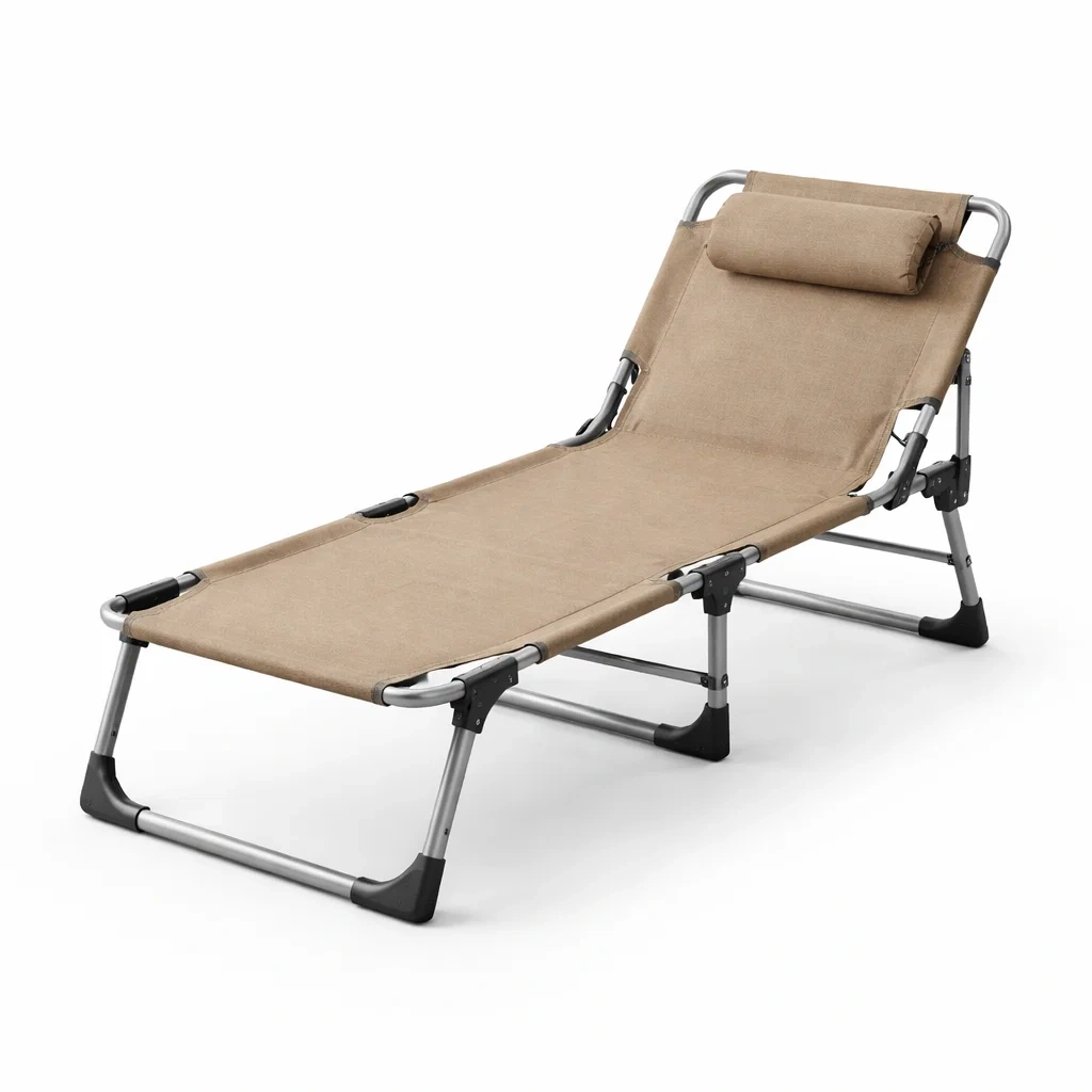 Lettino pieghevole in acciaio e tessuto beige